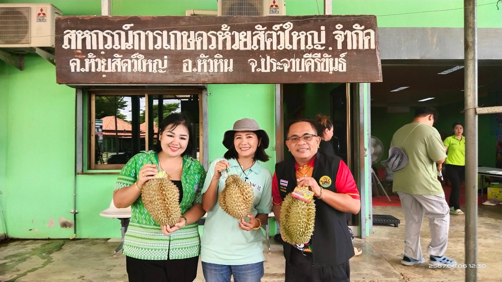 วันที่ ๖ มิถุนายน ๒๕๖๗ นายประยูร พะมะ สหกรณ์จังหวัดประจวบคีรีขันธ์ พร้อมด้วย นางสาวกันต์ลภัส กระดังงา ผู้อำนวยการกลุ่มส่งเสริมและพัฒนาธุรกิจสหกรณ์ และบุคลากรของสำนักงานสหกรณ์จังหวัดประจวบคีรีขันธ์ ร่วมกับผู้แทน กรมส่งเสริมสหกรณ์ นางสาวชัญญา จงทัน ผู้เชี่ยวชาญด้านพัฒนาธุรกิจโคนมของสหกรณ์ และกลุ่มพัฒนาสหกรณ์โคนมและโคเนื้อ เข้าตรวจเยี่ยม แนะนำ ช่องทางการจำหน่ายทุเรียนป่าละอู ให้กับสหกรณ์การเกษตรห้วยสัตว์ใหญ่ จำกัด นอกจากนี้ ยังมีอมรินทร์ทีวี เอชดี ช่อง 34 มาถ่ายทำรายการเพื่อประชาสัมพันธ์การจำหน่ายทุเรียนป่าละอูให้กับสหกรณ์อีกด้วย ณ สหกรณ์การเกษตรห้วยสัตว์ใหญ่ จำกัด อำเภอหัวหิน จังหวัดประจวบคีรีขันธ์